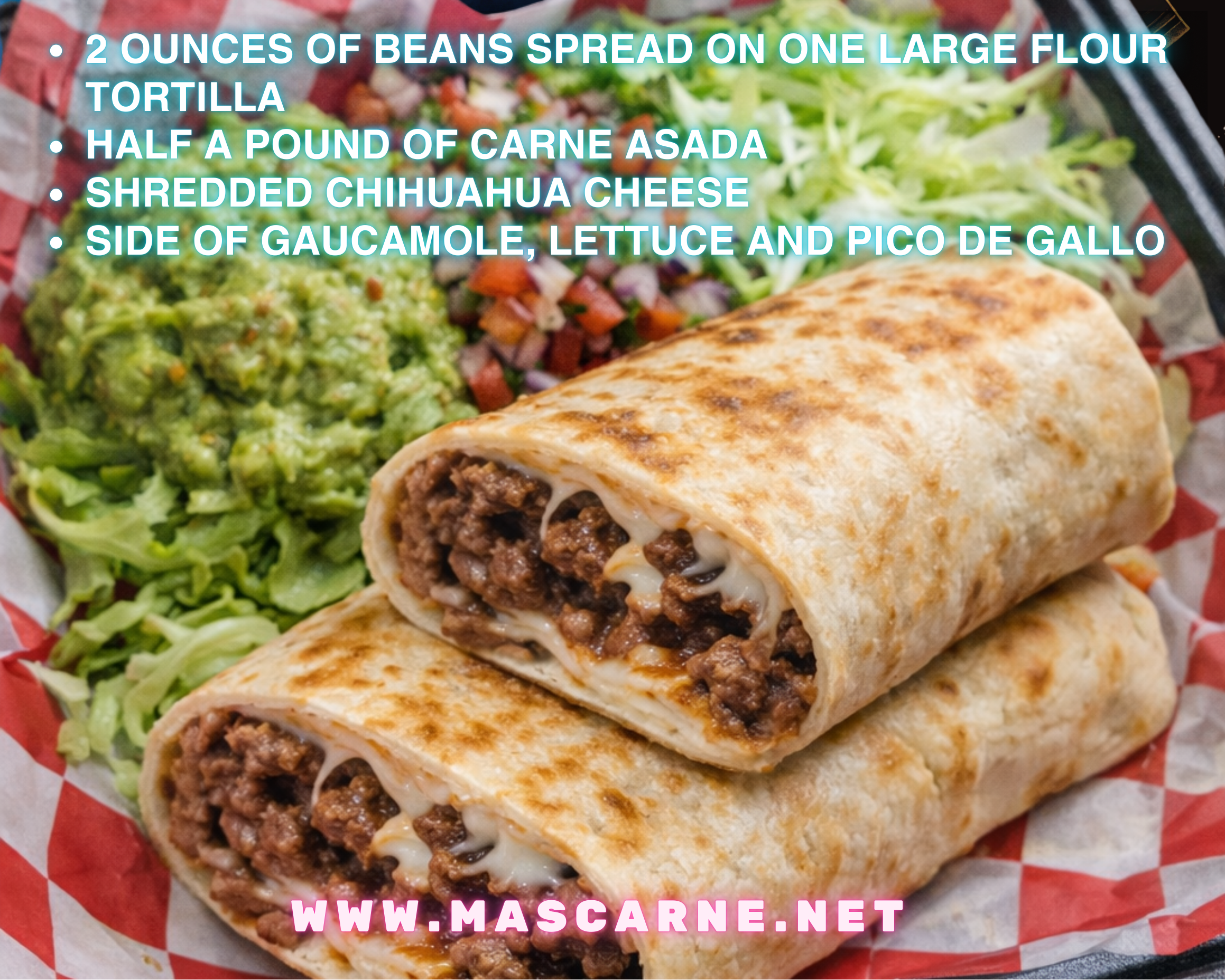 Every order comes stacked with ½ pound of premium Carne Asada.